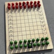 Ce jeu en bois géant ludique, de la famille des dames ou des échecs se joue à deux joueurs, à partir de 7 ans.