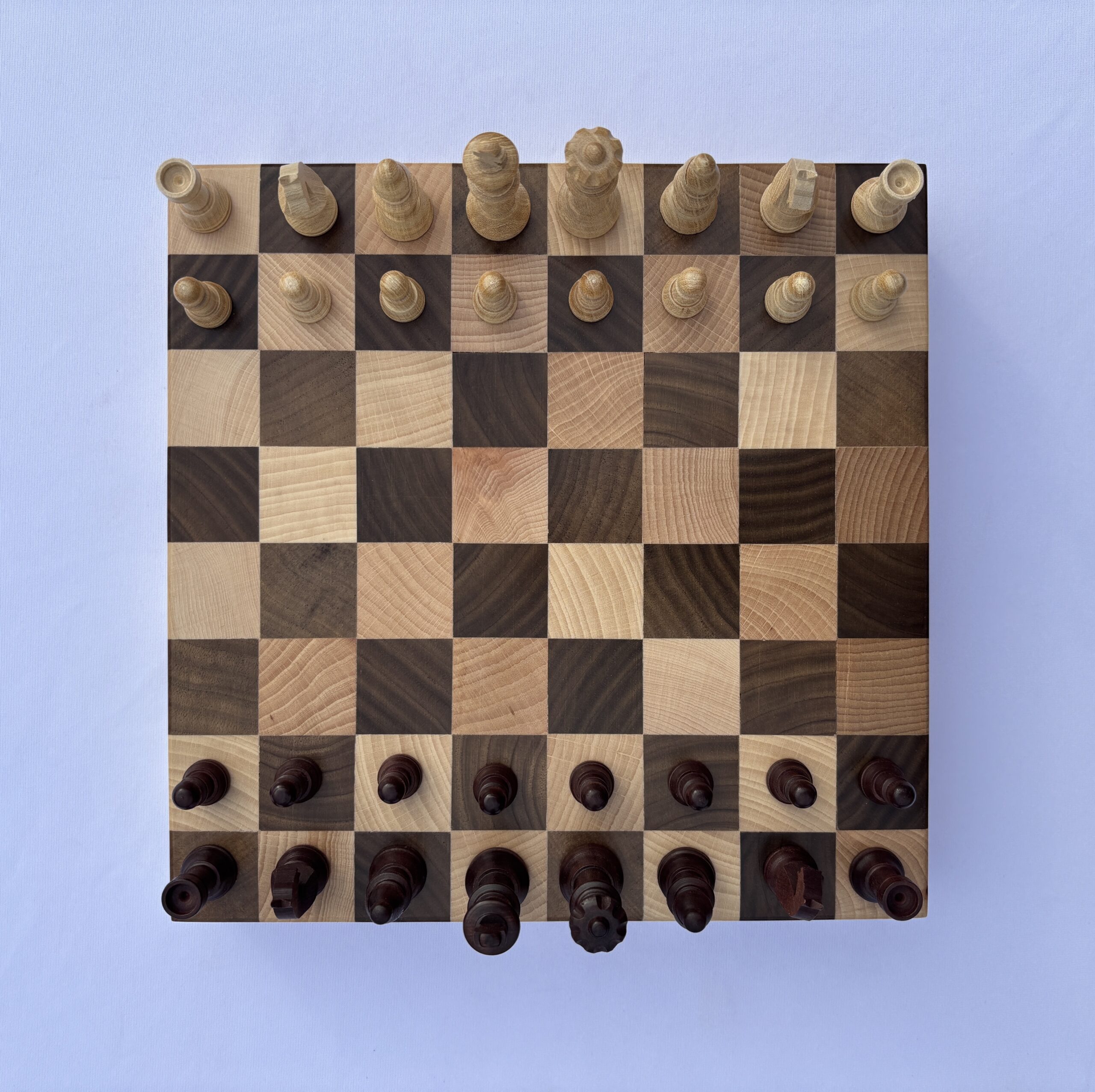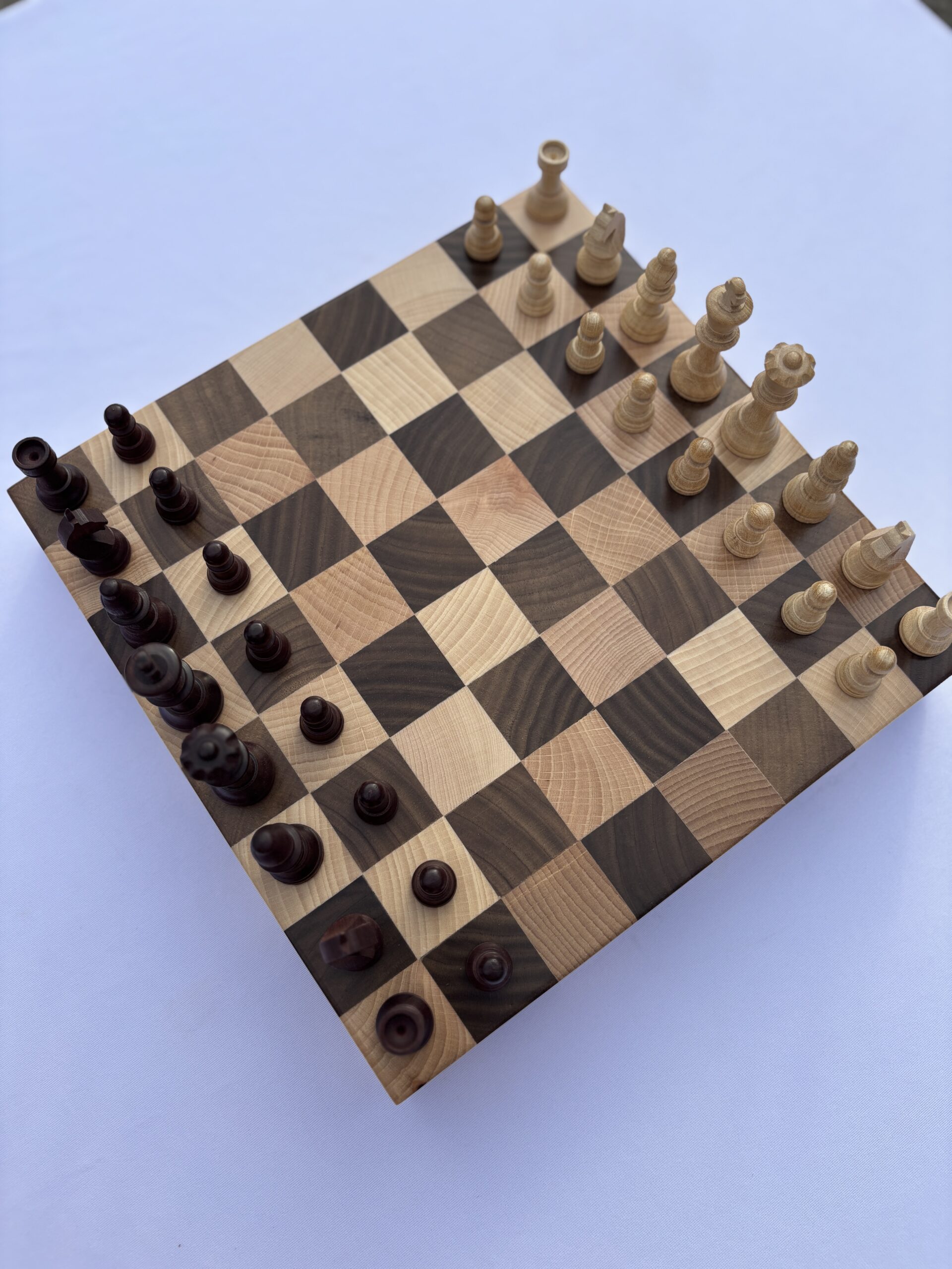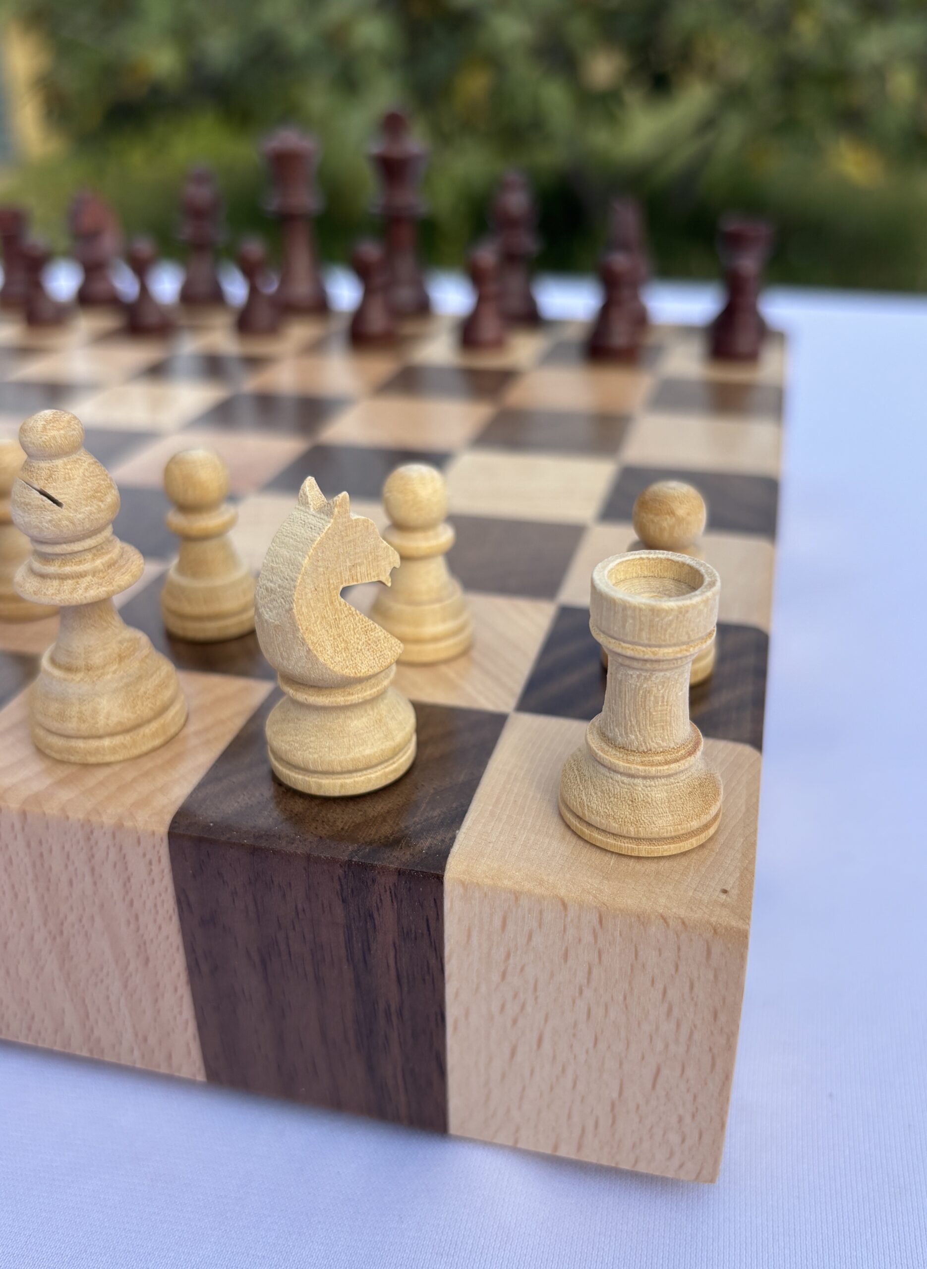 •  L'echiquier N°1 ( Taille M),   de dimensions 23,5 cm x 23,5 cm et ses pièces en buis.
